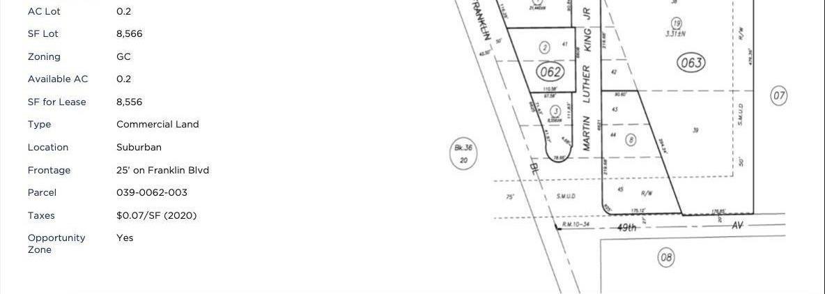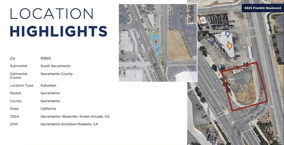 Available For Lease & For Sale. Call to Discuss Options. GC zoning. Lots of opportunity such as Car dealership, car wash, storage, Auto repair, Tire shop, mini coffee shop, Drive thru potential and other potential options available. Call to inquire. Easy access to/from US Highway 99 Benefits from strong traffic counts with over 219,000 cars passing in South Sacramento Strong demographics High exposure, hard corner location Terms are negotiable.